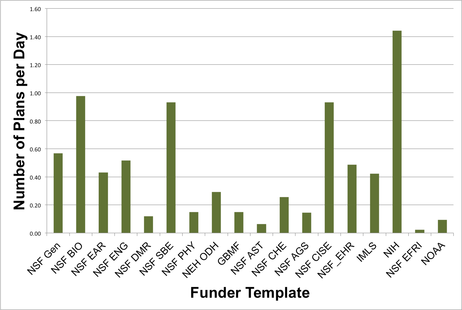 The most widely-used funder template on DMPTool through 2012 was NSF – BIO.