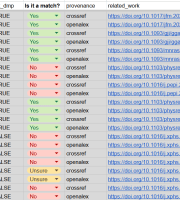 - There is not likely to be a magic solution that gets us to completely automate the process of matching a research output to a DMP without changes in our scholarly infrastructure. Researchers conduct a lot of research in the same topic area, so it’s difficult to know for sure if a paper or dataset came from a DMP, unless they specifically include these references. There are ways to improve this, such as using DOIs and their metadata to create bi-directional links between funding and their outputs (as opposed to one-directional use of grant identifiers), including in data repositories. DataCite and Crossref are both actively working to build a community around these practices, but many challenges still remain. Because of this, we plan to have the researcher confirm matches before they are added to a record, rather than attempt to add them automatically.